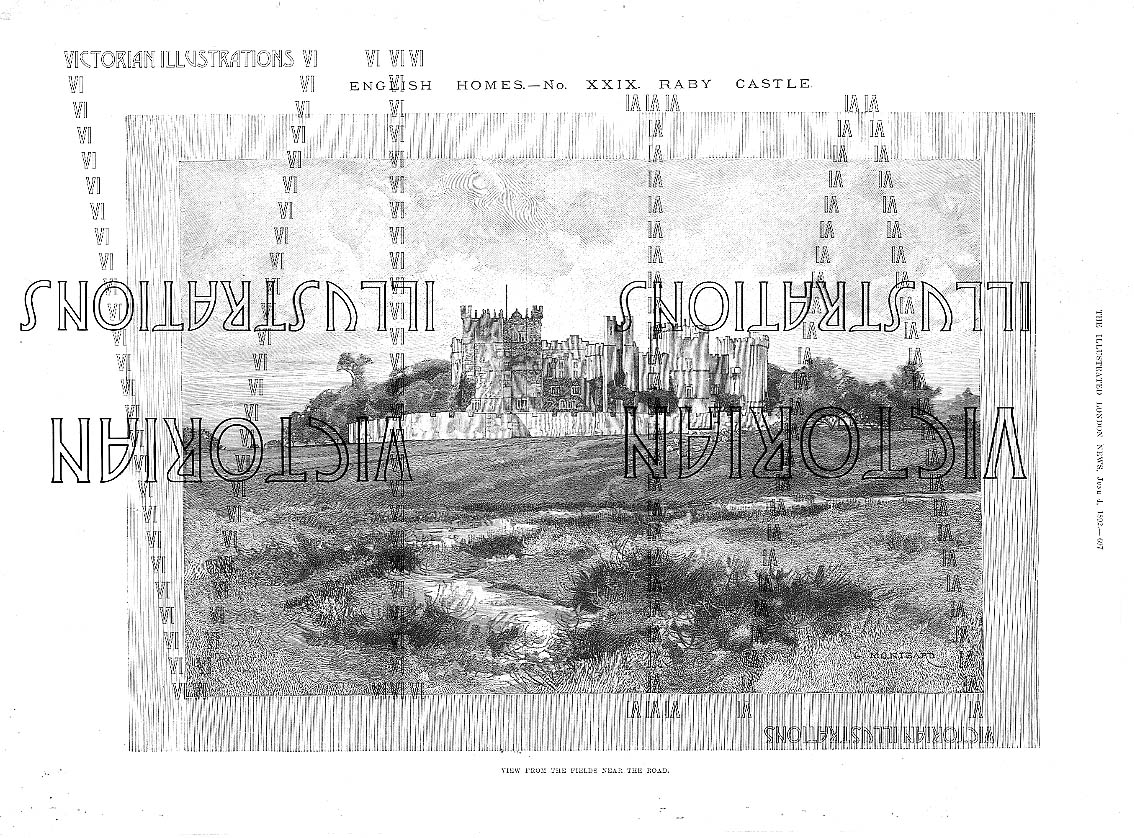 Raby Castle View from the fields near the road The Illustrated London News 4/6/1892 30x40 cm