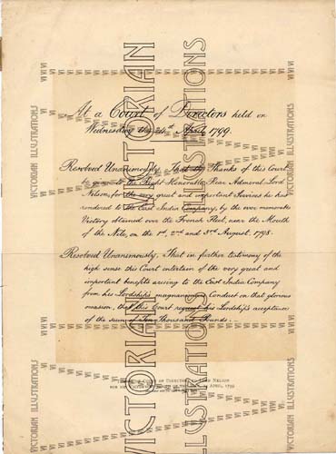 Thanks of Court of Directors To Lord Nelson for his Victory at Mouth of the Nile 24th April 1799